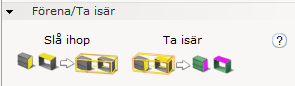 Verktygen Slå ihop och Ta isär används för att gruppera och avgruppera meshar från olika komponenter. Att ta isär en grupp av meshar resulterar i fristående meshar som kan modifieras. Funktionaliteten kvarstår endast i originalkomponenten, men finns inte kvar i den nya komponenten.
