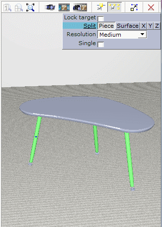 Verktyget Dela mesh används för att separera meshar som ofta är grupperade, t.ex. benen på ett bord. Detta ger dig mera frihet att bearbeta varje mesh som du önskar.