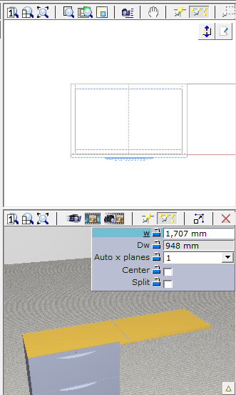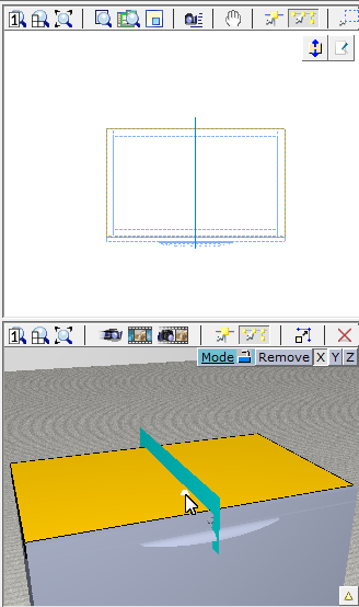 Rör muspekaren för att hitta rätt position för kap-planet. En inmatningsruta visas där du kan bestämma om kap-planet ska sättas in på X-, Y- eller Z-led. Du kan också använda mellanslagstangenten för att ändra led. I inmatningsrutan finns även en knapp för att ta bort befintliga kap-plan.