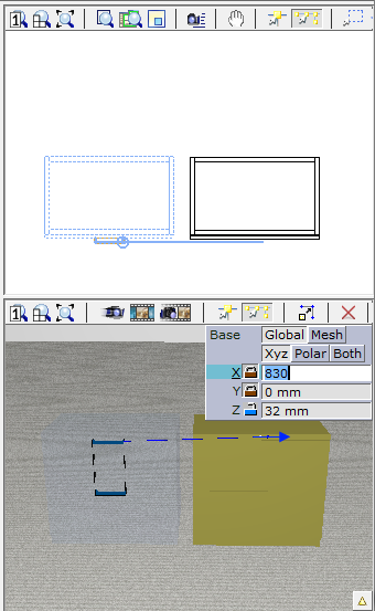 Skriv antingen in avståndet och vinkeln som meshen ska flyttas, eller flytta muspekaren till önskad position och klicka en gång.