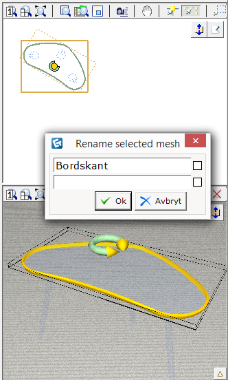 För muspekaren till ritytan och klicka för att markera den eller de meshar som du vill döpa om. Du kan markera flera meshar genom att hålla ner Ctrl-tangenten samtidigt som du klickar på mesharna. Markerade meshar blir gula.