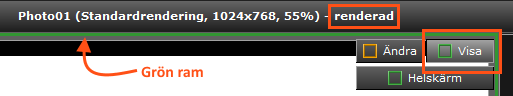 Framkallningen sker i ett separat fönster, Renderingar, och du