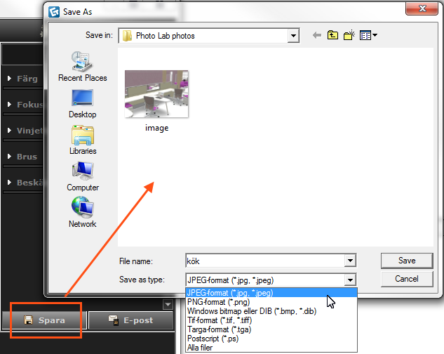 När du är nöjd med din bild kan du spara det i olika bildformat. För att spara ett foto, gör så här: