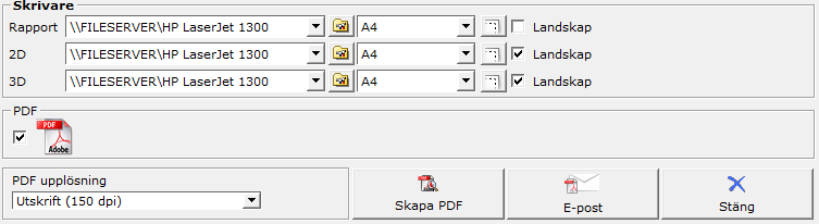 För att skapa en PDF-fil och bifoga den till ett e-postmeddelande, markera kryssrutan PDF och klicka sedan på knappen E-post.