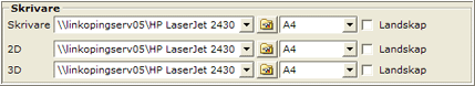 Skrivaren som väljs i fältet 2D används för att skriva ut planlösning och andra ritningar.
