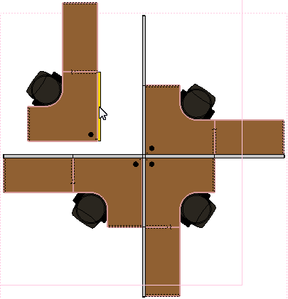 Komponentblocken fungerar på de flesta sätt som vanliga Block. Undantaget är att ursprungsplatsen på Komponentblockets paneler nu fungerar som snappunkter, detta låter dig flytta och snappa dina block mot paneler i din ritning. Se figur 1 nedan för ett exempel. Läs mer om att klona, infoga och redigera dina Komponentblock från sektionen om Block.