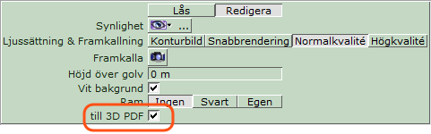 Har du glömt det är det ändå lätt ordnat; markera bara ramen på vy-portal 3D och kryssa i rutan till 3D PDF i den gröna inmatningsrutan: