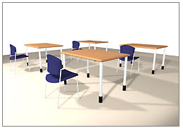 Du vill förändra alla bordsfötter på ett antal bord som är grupperade på ritytan. Bordsfötterna ska byta material från krom till svart (Figur 1 och Figur 2).