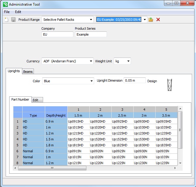 In the following chapters you will find descriptions on how to create, edit and delete product series. All examples are then based on the Selective Pallet Racks products. The basic principle for your work in the administrative tool is the same, whether you work with pallet racks or shelving.