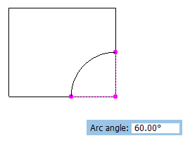 Move the mouse pointer horizontally to the right, until the arc's red dashed help line forms an extension of the solid existing line. The entry in the Angle field in the input display should be 0.00.