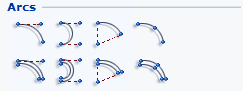 Under the heading Arcs, there are eight items in total - four different types of arcs and the double versions of these. Below, we will describe the behavior of the single arcs.