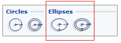 Under the heading Ellipses, you will find two items - the Ellipse through radii and a double version of the ellipse. Below, we will describe the behavior of the single ellipse.