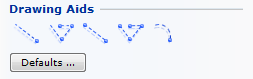 The top row of components on the Line Drawing 1 tab is called Drawing Aids and consists of five components. Drawing Aids are, as their name suggest, tools to help you when you are creating a drawing. The drawing aids do not appear on printouts.