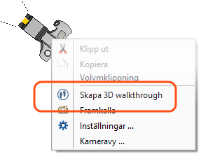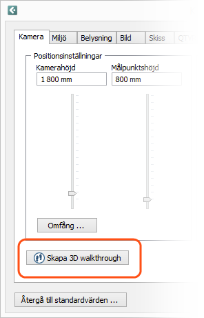 Kameravy, Högerklick på kamera eller dialogrutan Kamerainställningar (på fliken Kamera): dessa tre alternativ startar din walkthrough från den kameraposition som du har valt.