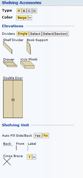 The items found on the Shelving Accessories tab either snap to the elevation views or the actual shelving unit.