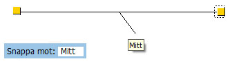 Streckritningskomponenter snappar mot varandra. När en ny streckritningskomponent förs mot en annan som tidigare placerats på ritytan, hittar den nya automatiskt bestämda punkter på den redan placerade komponenten. För att bestämma vilka punkter komponenten ska snappa mot, hoppa mellan de olika valen in fältet Snappa mot genom att genom att trycka på en av piltangenterna på tangentbordet. Tre val ges - Allt, Mitt eller Ände. När programmet hittar punkterna visas en hjälptext.