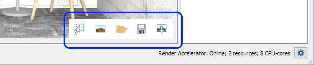 The toolbar gives you easy access to these tools for handling the rendering in different ways: