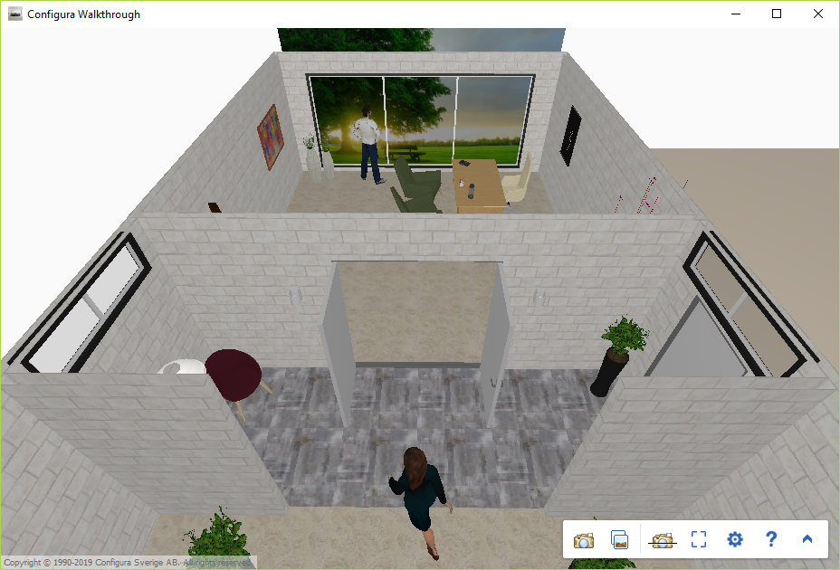 Want to show your clients exactly how their space will look? With Configura Walkthrough you can! With a keyboard and mouse, or a gamepad you can move around in 3D, go forwards and backwards and turn 360 degrees around.