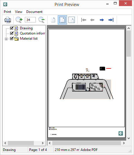 Note: The appearance of the Print Preview window might differ in the different customizations of the program, depending on whether Configura Standard's new improved preview window is included or not. |