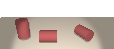 CylinderIn the Cylinder Settings dialog, you can specify the Length, Radius and Vertical position of the cylinder. (The Distance to floor is the distance between the cylinder and the floor.) In the two fields for Rotation, you can enter values (number of degrees) for rotating the cylinder. In the figure the cylinder to the left is not rotated. The values for the Y-Axis and Z-Axis are set to 0. However the Distance to floor has been set to 500 mm, so the cylinder is suspended above floor level.