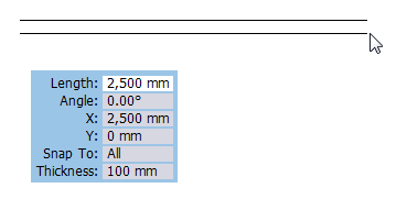 If you want to position a line and give it an exact dimension, the easiest method is to enter the dimension in the input display which is shown after you have selected the component and clicked once in the drawing area.
