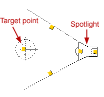 Release the mouse button. The spotlight and target are now in place and a new spotlight component is available on the mouse cursor.