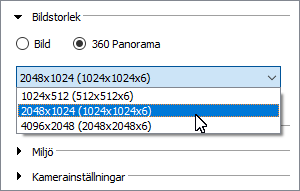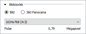 För 360 panoramabilder finns det tre storlekar att välja mellan: