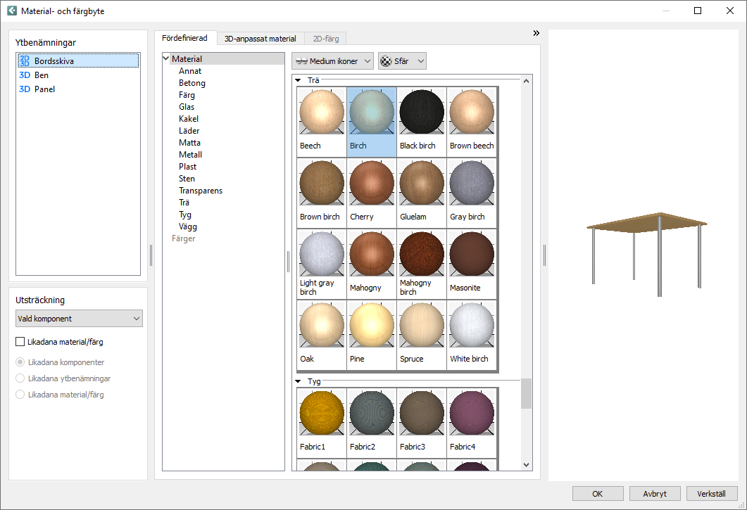 I dialogrutan Material- och färgbyte