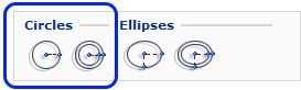 Under the heading Circles you will find two items - the Circle through radius and a double version of the circle. Below, the behavior of the single circle is described.