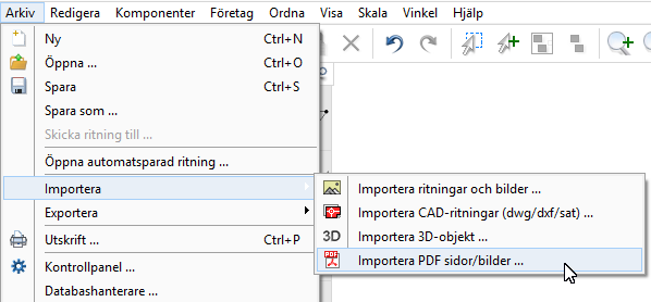 Förutom att dra och släppa en PDF-fil direkt på ritytan kan du även importera en PDF-fil så här: