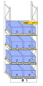 Exempelvis pallställ har olika höjd och olika sammansättningar av balkar. För att ändra antalet balkar i ett ställage måste det visualiseras på ett annat sätt än i en planvy i 2D. När du lägger till en sidovy för ett ställage läggs gavlar och balkar automatiskt till ställaget. När du har en sidovy kan du sedan lägga till eller ta bort balkar från ställaget samt justera höjden.